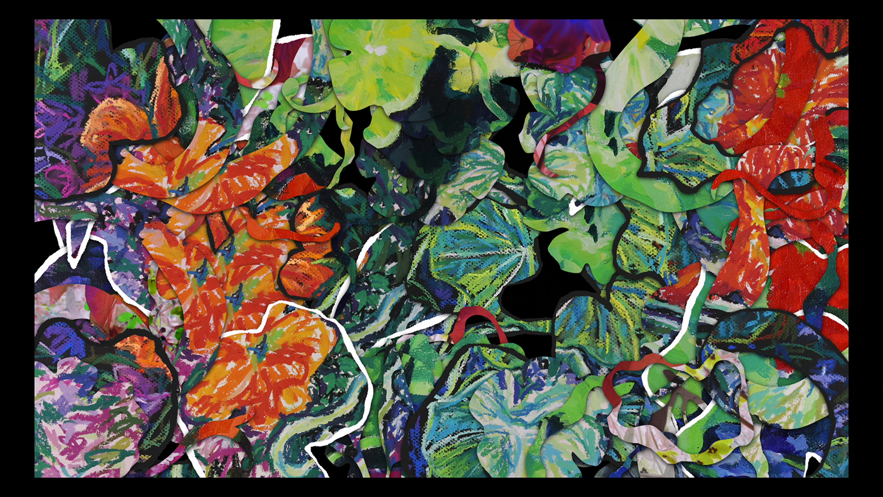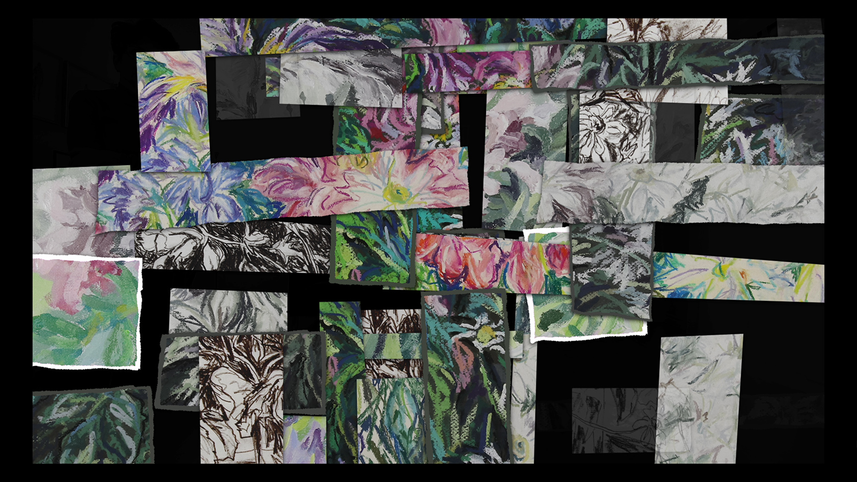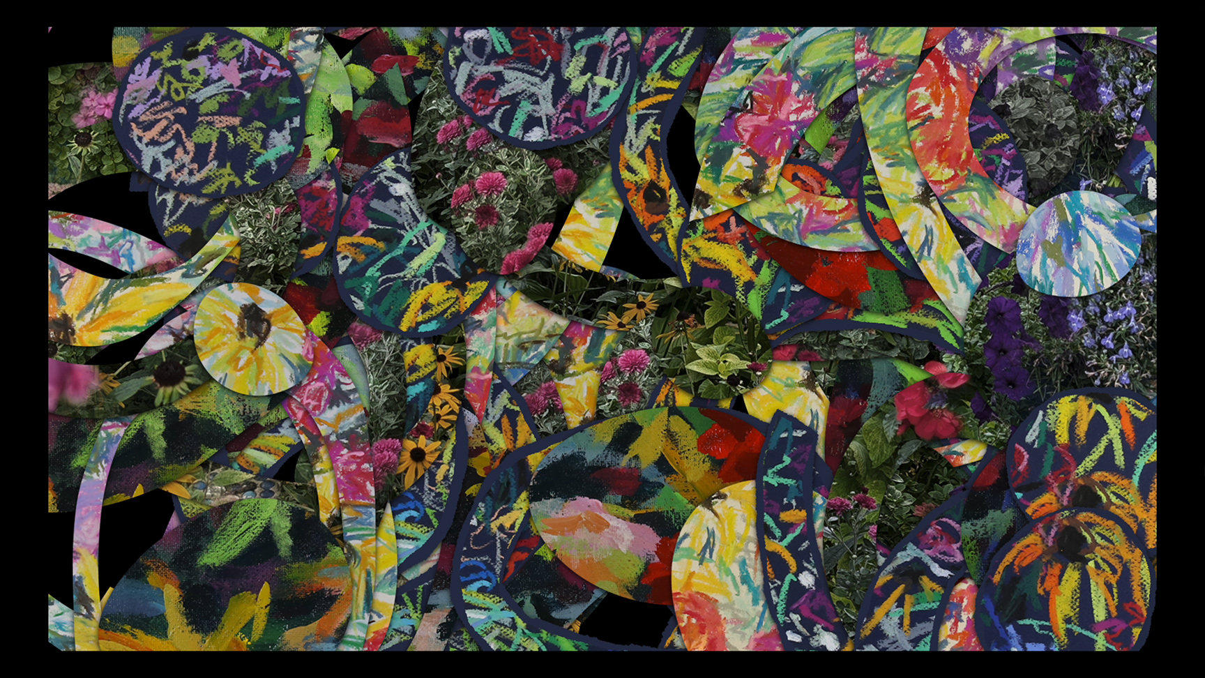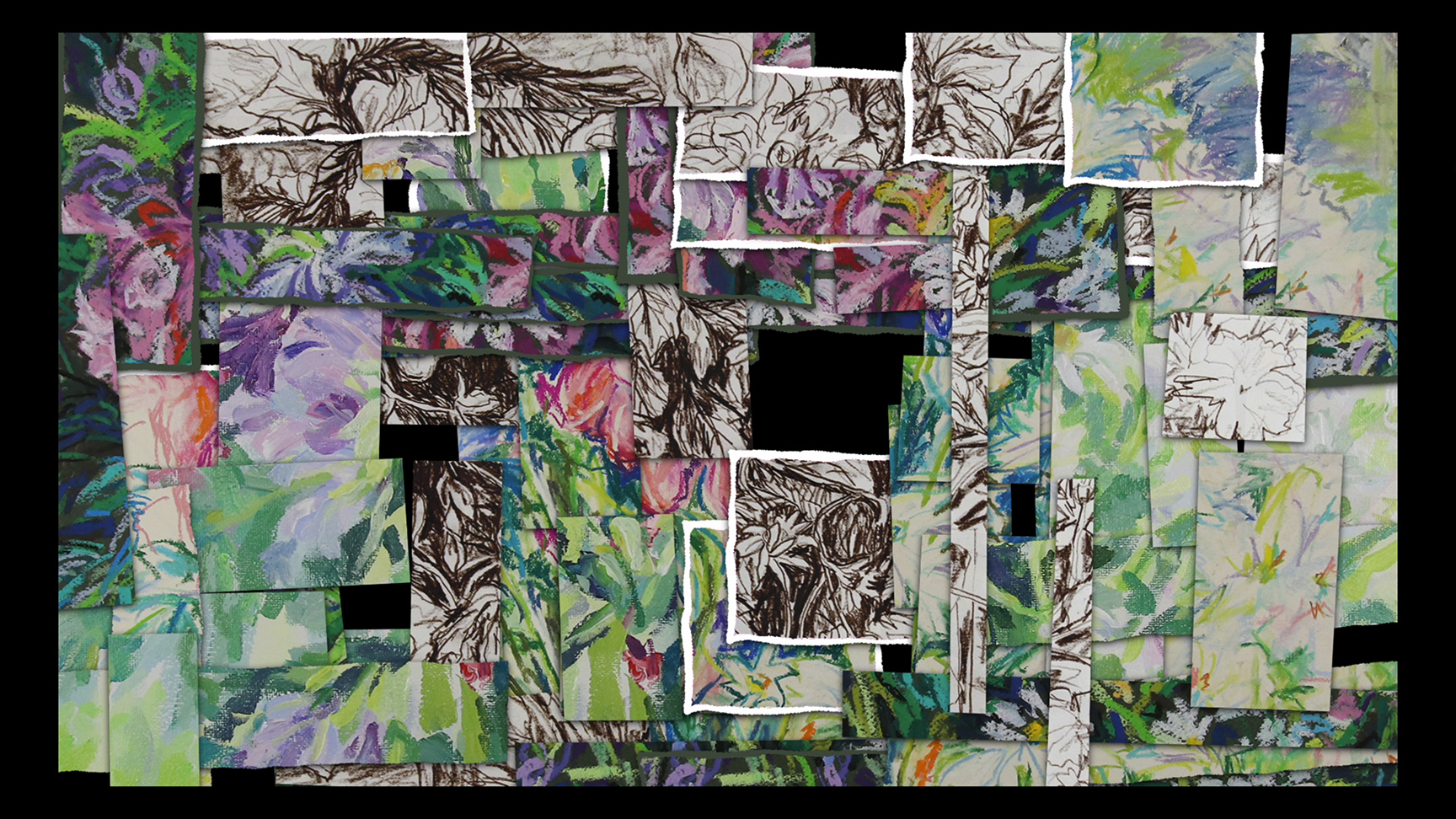 A new interactive digital collage fosters a sense of renewal and hope by bringing the materiality of drawing and painting into the virtual realm of code. Exploring the garden as a transformative heterotopia, a space that exists alongside our present reality, this work creates multiple sites: a physical space, a pictorial space, an imaginary space, a space of regeneration and active participation. A potent mix of organic, human and technological touchpoints comes together in a hybrid work, a responsive installation that evolves in real time.